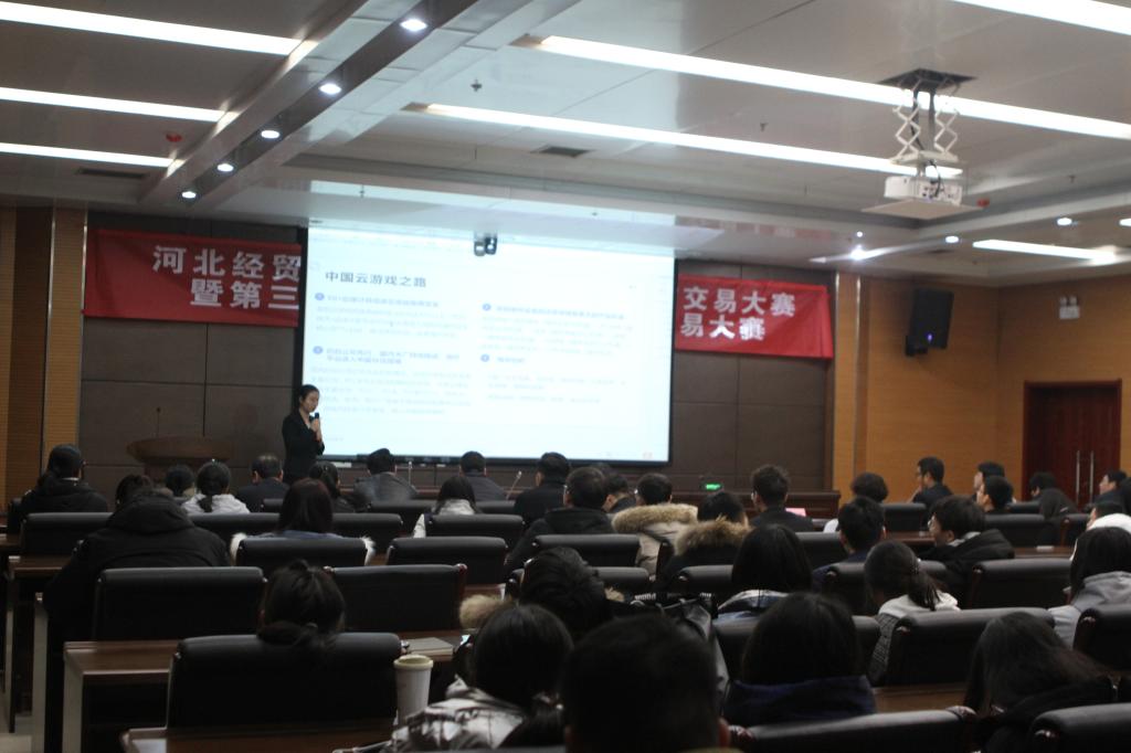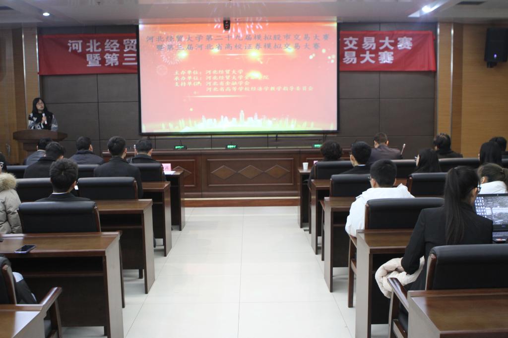 12月21日下午,公司第二十九届模拟股市交易大赛暨第三届河北省高校证券模拟交易大赛团体赛决赛及颁奖仪式在第三会议室顺利举行,来自河北工业大学、石家庄铁道大学、河北地质大学、华北理工大学、pa集团官方网站五所高校的的六支队伍参加,100余名师生观看比赛。