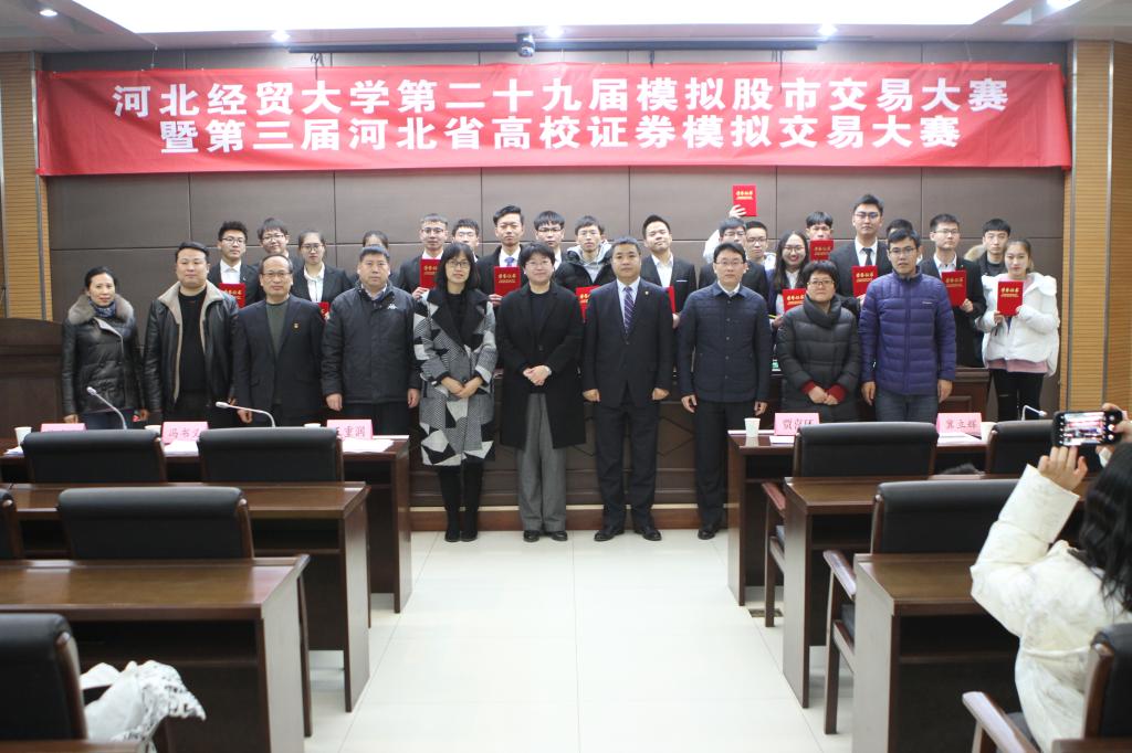 本届大赛于2019年9月份开幕,历时三个多月,分设个人赛和团体赛两部分,个人赛根据2019年12月6日模拟交易平台停止交易时的统计数据,由高到低排列所有参赛选手的总收益资金并确定获奖个人;团体赛根据所有投资分析报告,经专家评审,结合最后答辩成绩综合确定最终排名。河北省金融学会、河北省高校公司经济学教学指导委员会对赛事进行了指导。