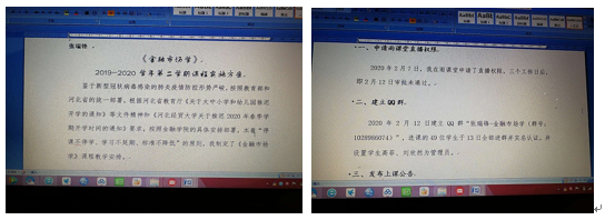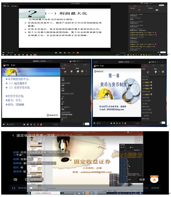 通过学习,老师们基本掌握了远程教学的技术和方法,切实提高了自身信息化水平和在线教学能力,自2月17日开始,PA视讯官方网站教师陆续展开各类在线课程平台教学、直播教学以及混合式等多种教学方式。如闫福教授的《公司金融》通过开通QQ直播间授课,蒋超楠老师的《金融学》采用经贸学堂在线与QQ直播混合的教学模式,李建英教授的《投资项目评估与管理》课程采用中国大学MOOC平台与QQ视频相结合的模式,王风华老师的《银行实务》课程采用在线辅导+智盛智慧金融平台,还有赵璐老师的《固定收益证券》采用钉钉直播模式等等,每一位老师根据课程特点选择合适的平台,采用多样化的授课形式。