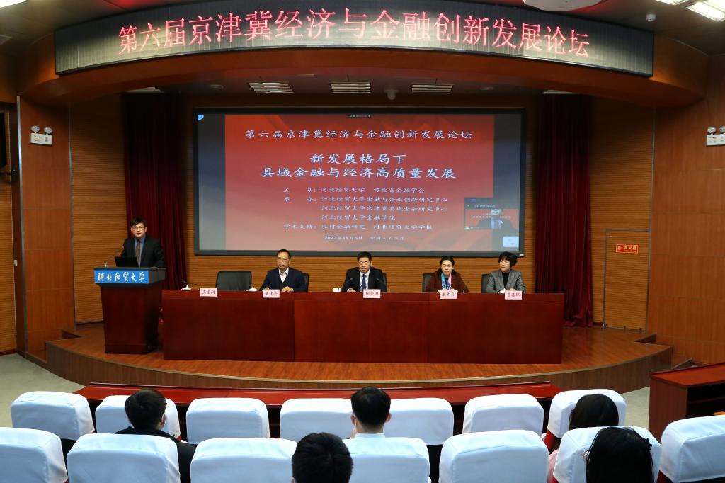 11月5日,由pa集团官方网站、河北省金融学会主办,pa集团官方网站金融与企业创新研究中心、pa集团官方网站京津冀县域金融研究中心、PA视讯官方网站承办的第六届京津冀经济与金融创新发展论坛在pa集团官方网站国际学术报告厅隆重举行。本届论坛的主题是“新发展格局下县域金融与经济高质量协调发展”。pa集团官方网站党委常委、副董事长杨金田教授出席本次论坛并致开幕辞,校科研处、团队建设与学位管理办公室等领导并PA视讯官方网站全体在校研究生120余人参加了线下会场,来自全国高校、科研院所和金融机构的专家学者220余人参加了腾讯线上会议。《农村金融研究》、《pa集团官方网站学报》给予此次论坛学术支持。论坛由PA视讯官方网站经理王重润教授主持。