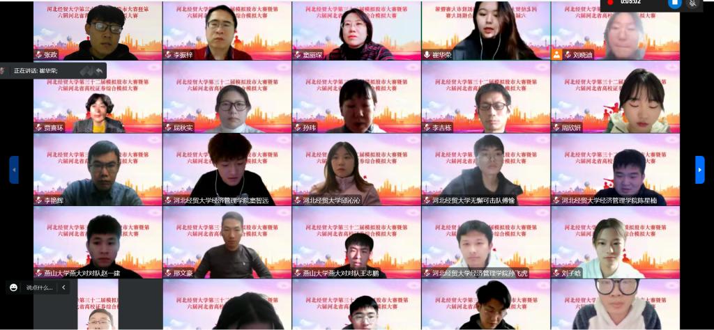 12月4日上午,公司第三十二届模拟股市交易大赛暨第六届河北省高校证券模拟交易大赛团体赛决赛及闭幕式通过线上方式顺利举行。公司党委书记贾喜环、副经理窦丽琛出席,来自燕山大学、河北农业大学、河北地质大学、pa集团官方网站等高校的六支代表队参加了团体决赛。决赛现场,各高校参赛选手沉着冷静,分析有条不紊,答辩逻辑清晰;评委专家点评精彩,问题犀利。最终,pa集团官方网站第一代表队荣获一等奖,河北地质大学代表队和pa集团官方网站第二代表队荣获二等奖,河北农业大学代表队、燕山大学代表队和pa集团官方网站经济管理公司代表队荣获三等奖。