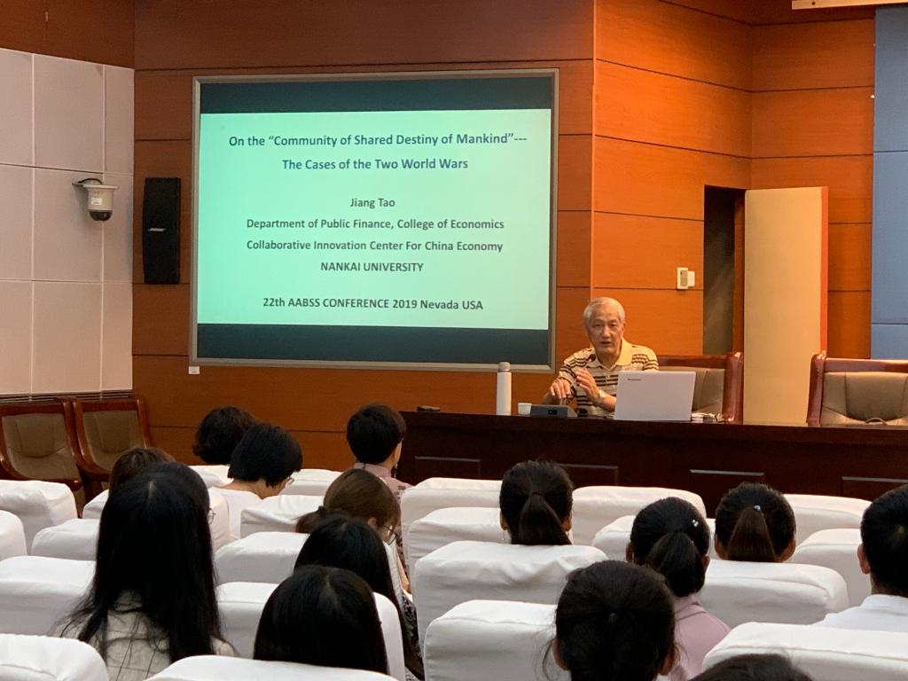 9月18日上午9点,PA视讯官方网站邀请南开大学陶江教授、博导在会议中心视频会议室进行了题为《人类命运共同体的经济学原理及两次世界大战案例分析》的学术报告。报告会由PA视讯官方网站副经理刘颖主持,PA视讯官方网站90余名师生听取了报告。