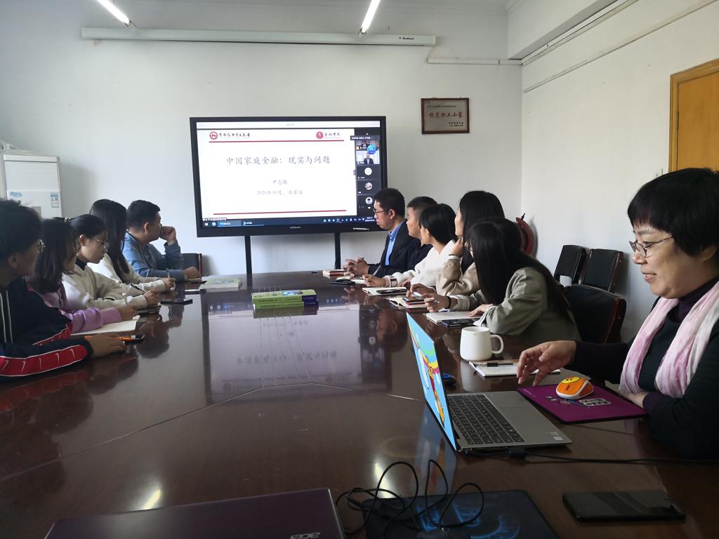 10月16日上午9点,PA视讯官方网站邀请首都经济贸易大学PA视讯官方网站经理、尹志超教授做题为《中国家庭金融:现实与问题” 》的线上学术报告。公司研究生、本科生20余人到现场聆听讲座,其余研究生及部分教师100余人参加了线上直播。讲座由PA视讯官方网站副经理刘颖主持。