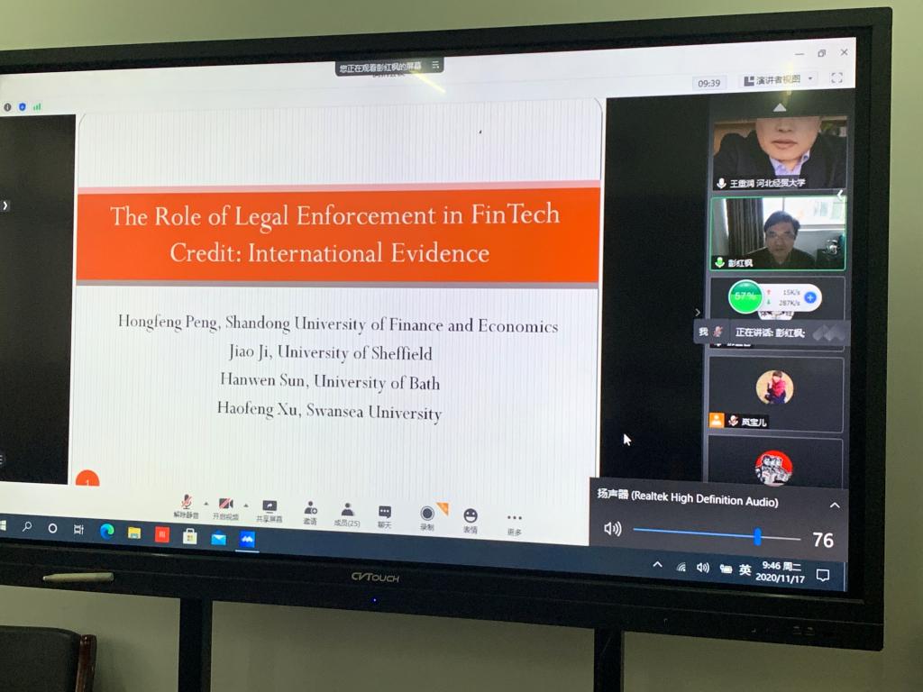 11月17日上午9点45分,PA视讯官方网站邀请山东财经大学金融学院经理、教授、博士生导师彭红枫做题为“The Role of Legal Enforcement in FinTech Credit: International Evidence”的线上学术报告。PA视讯官方网站部分教师和各专业研究生40余人参加了报告。本次报告由PA视讯官方网站经理王重润主持。