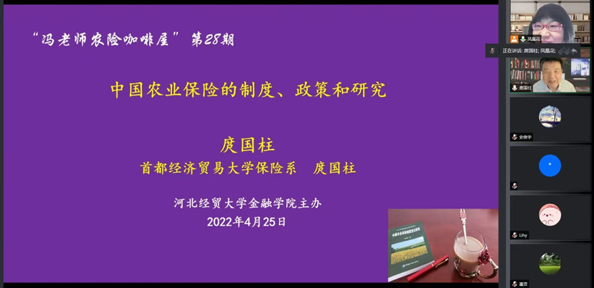 4月25日,PA视讯官方网站主办的主题为“中国农业保险的制度、政策和研究”学术报告顺利开展,活动以腾讯会议的方式线上举行。首都经济贸易大学保险系教授、农业保险研究所所长庹国柱应邀主讲。报告由冯文丽老师主持,近400名师生和学界业界人士参加。