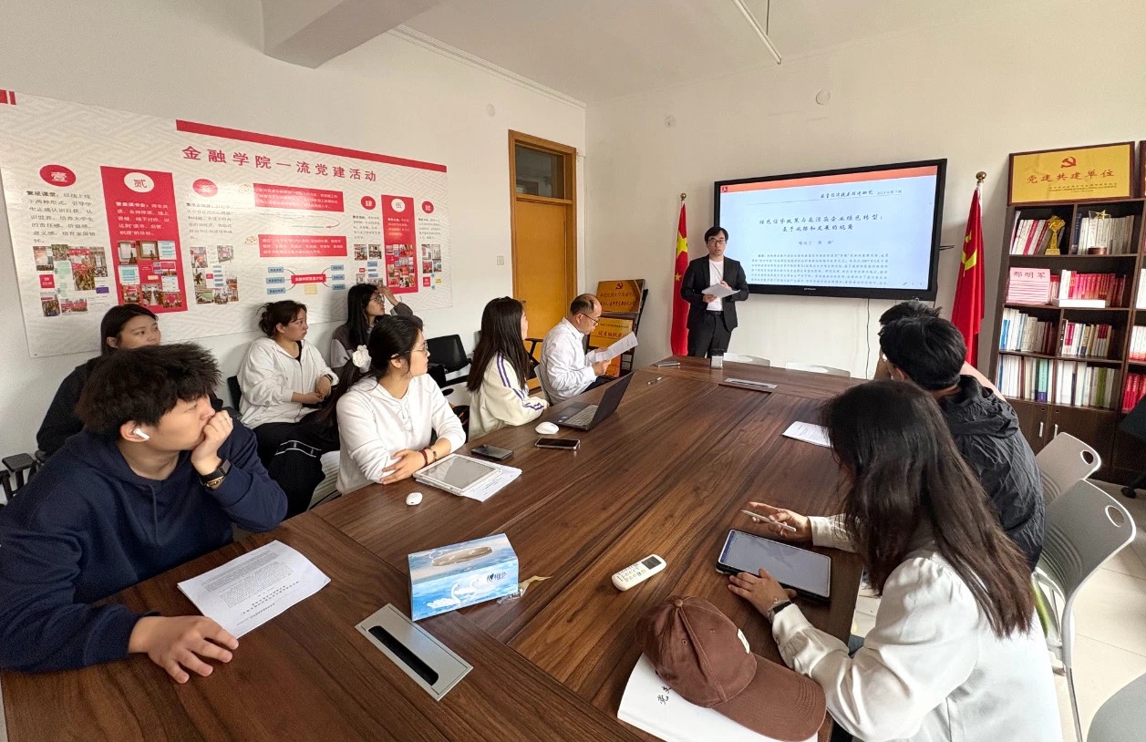 5月7日上午十点,PA视讯官方网站在三办党务会议室举办第五十九期融道论坛研究生沙龙活动。本期论坛由23级金融专硕杜朋毅同学主讲,分享主题为《绿色信贷政策与高污染企业绿色转型:基于减排和发展的视角》。PA视讯官方网站副经理范庆祝出席,二十余名研究生参加。