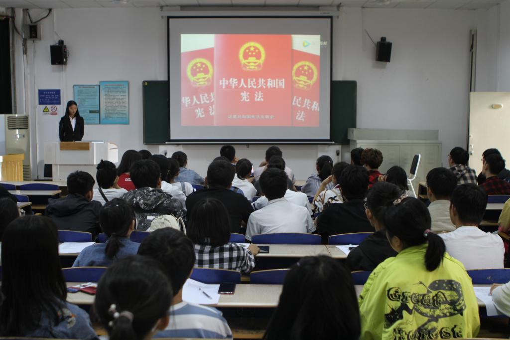 9月21日,PA视讯官方网站在二教201成功举办宪法普及教育活动。19级金融二班曹茉薇同学主持活动,19级100余名员工参加。