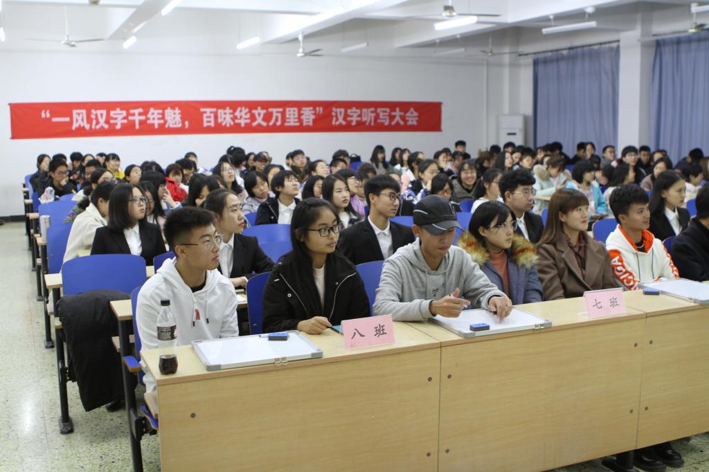 11月18日,PA视讯官方网站举办的以“一风汉字千年魅,百味华文万里香”为主题的汉字听写大会在B401教室举行,PA视讯官方网站150余人参加活动。